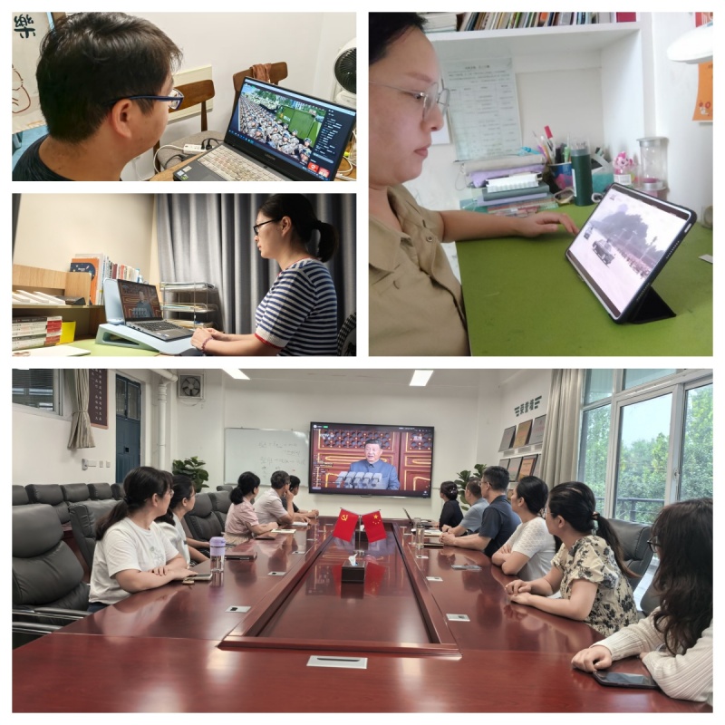 为铭记历史、缅怀先烈,弘扬伟大爱国主义精神和抗战精神,激发广大师生的爱国情怀,9月3日上午,纪念中国人民抗日战争暨世界反法西斯战争胜利80周年大会在北京天安门广场隆重举行,以盛大阅兵仪式,同世界人民一道纪念这个伟大的日子,共同开创更加光明的未来。中共中央总书记、国家主席、中央军委主席习近平发表重要讲话并检阅受阅部队。我院积极组织师生以多种形式收看实况直播。学院在尚严楼C217会议室设主会场,组织在校教师集中观看,其余师生则通过电视、网络等渠道在家同步收看。