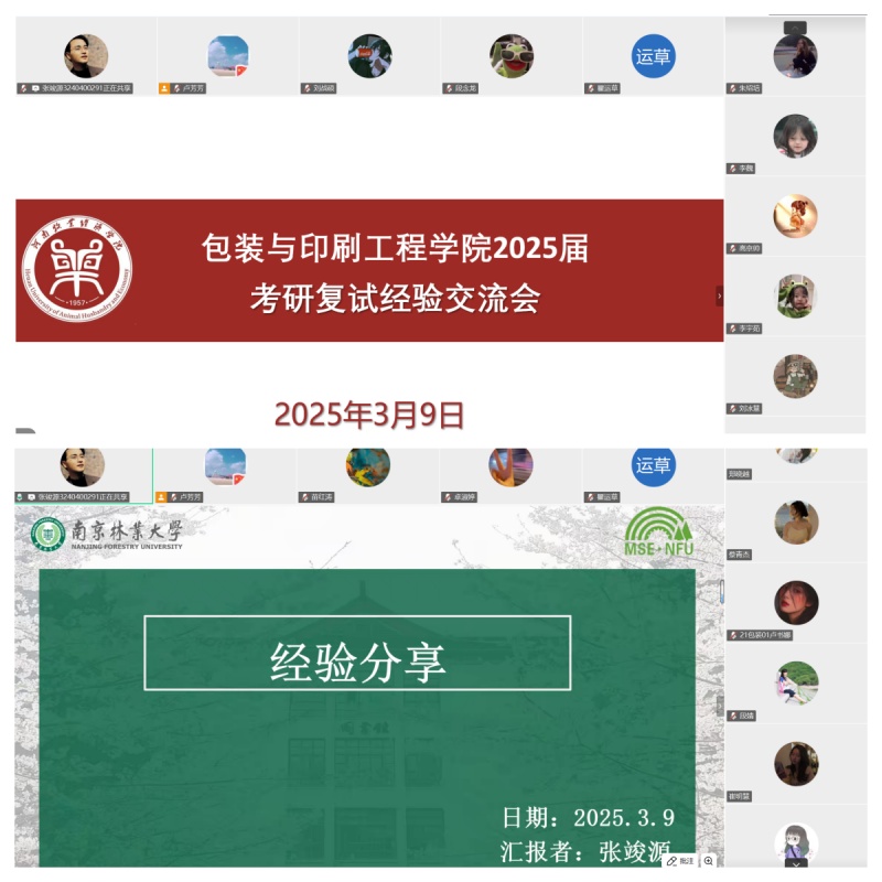 近日,全国研究生入学考试成绩陆续公布。为助力考研毕业生更好地备战复试,提升复试成功率,拓宽未来发展空间,我院于3月9日在腾讯会议平台举办了2025届包装工程专业复试交流会。会议特邀五位成功考取研究生的优秀校友分享复试经验。WilliamHILL中国副书记李帅堂、副院长苗红涛、团委书记段婧等莅临现场,2025届考研毕业生积极参与。会议由包装工程教研室主任卢芳芳主持。