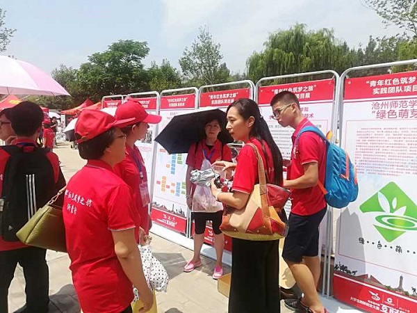 在习近平总书记给“青年红色筑梦之旅”活动大学生回信的鼓舞下,来自全国各地的团队怀揣自己的专业知识、创新项目奔赴临沂,以技术创新助推乡村振兴、精准扶贫。期间,我院团队现场展示了果蔬保鲜数据库、功能性保鲜膜及保鲜效果,张岩博士、王保营博士针对该技术的作用、应用、前景及注意事项为现场参观者做出讲解和答疑。我院的研究成果受到当地农户以及兄弟院校师生们的高度关注与肯定,德州学院、山东轻工职业学院的老师及福满庄的村长单独同我们进行了深入沟通、交流,并表达了合作的意愿。山东省有关领导、参会嘉宾、高校代表、众多农户参观了200多个项目展位,并与团队进行现场交流。