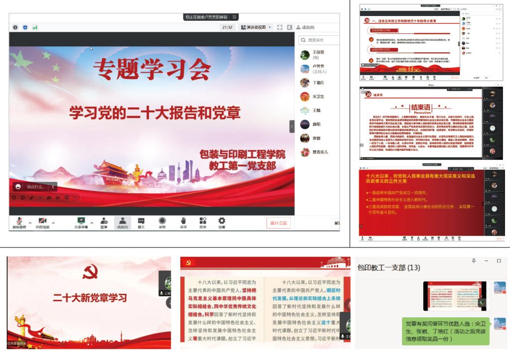 专题学习会采取支委领学、知识在线抢答与会后交流心得体会的方式进行。2月7日上午,支委成员宋卫生领学党的二十大报告全文,并结合《党的二十大学习辅导百问》进行深入学习,加深支部党员对报告核心要义、精神实质和丰富内涵的理解。2月7日下午,支委成员王保营领学新修订的《中国共产党章程》,并对修改部分内容进行了重点领学。为巩固学习效果,两部分学习结束后分别进行了知识在线抢答,支部成员张岩、丁艳红、王麟、宋卫生获得学习优胜奖。会后,支部成员撰写心得体会进行交流。