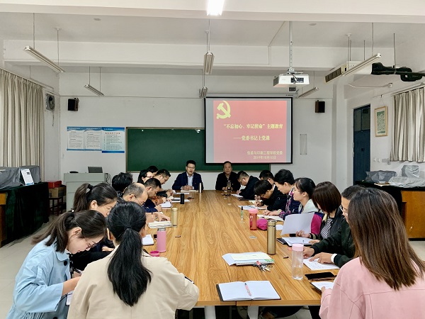 根据学校及学院“不忘初心、牢记使命”主题教育工作部署与安排,为扎实、有效推进主题教育,10月10日下午,院党委书记胡晓波同志以《坚持立德树人,回归教育初心》为题,为教工支部党员上党课。