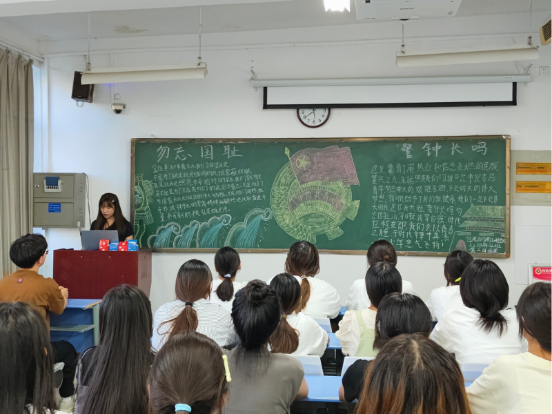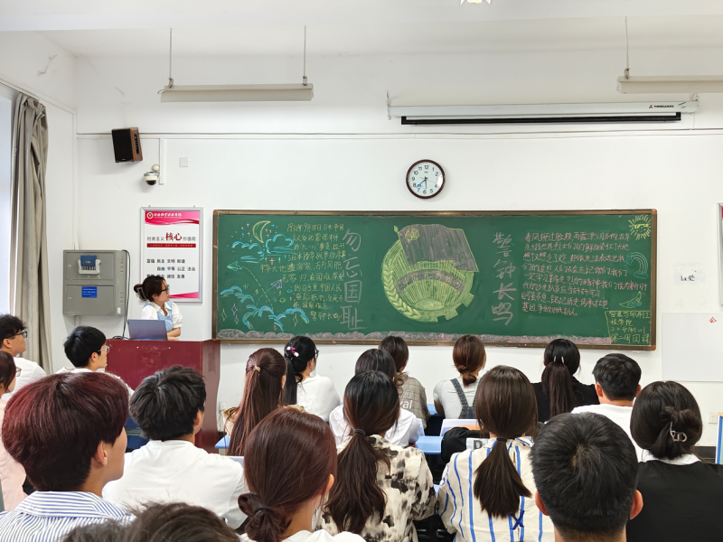 团课中,主持人首先通过PPT和视频播放的形式带领同学们回顾了“九一八”事变的历史背景及经过,让同学们再次想起那段沉痛的历史;接着,同学们结合身边实际分别谈了自己对这段历史的认识,他们纷纷表示无论岁月如何更迭,无论时光如何流转,一句“勿忘国耻”依旧会激起我们血脉中不屈的灵魂,一句“振兴中华”仍然能唤起我们内心民族的尊严。让警钟长鸣心中,是对历史最好的纪念。