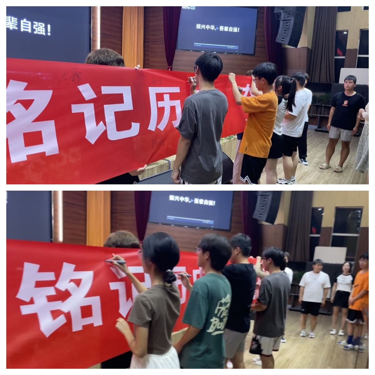 活动现场,同学们积极参与并集体签名,他们纷纷表示,要牢记中华民族屈辱的历史,理性地表达爱国情怀,从现在做起,珍惜时光,发奋图强,刻苦学习,为中华民族的崛起和腾飞努力拼搏。(文/图 张排杰)