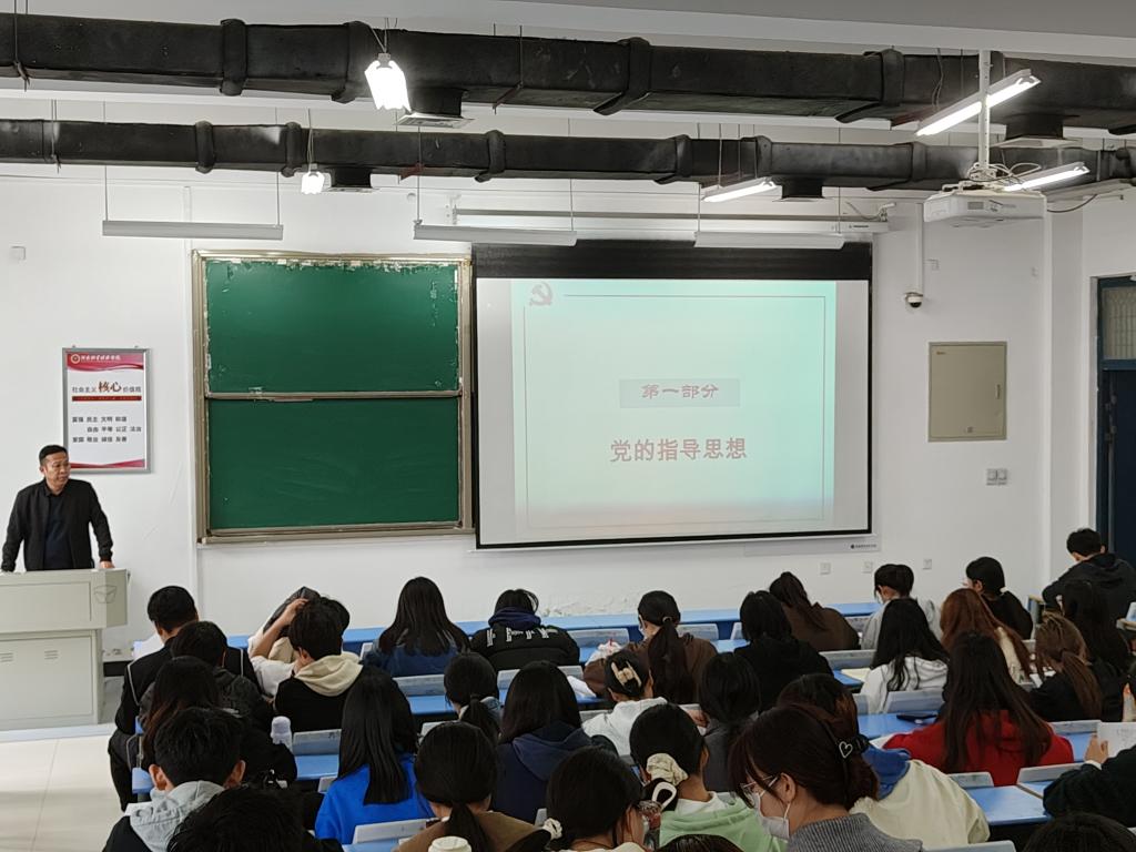 李帅堂以《中国共产党章程》为切入点,带领同学们回顾了党的指导思想的发展历程,多方面、深层次依次为大家讲解了马克思列宁主义、毛泽东思想、邓小平理论、“三个代表”重要思想、科学发展观、习近平新时代中国特色社会主义思想的主要内容。 他强调,党的指导思想是党的思想建设、政治建设、组织建设和作风建设的理论基础,作为一名入党积极分子, 不能仅仅把指导思想的理解局限于理论层面,还要在真学、真懂之后学会运用党的指导思想,把指导思想真正转化为自觉行动,转化为实践成果。