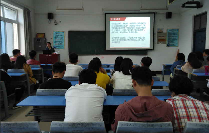 根据我校资助中心《关于做好2019届国家助学贷款毕业生毕业确认等有关事宜的通知》要求,同时响应“两节课”诚信教育课的计划,我院辅导员张晨景老师于5月6日下午在A303召开“2019届贷款毕业生还款流程培训暨诚信教育大会”,我院15级本科、16级专科的相关同学们参加了本次大会。