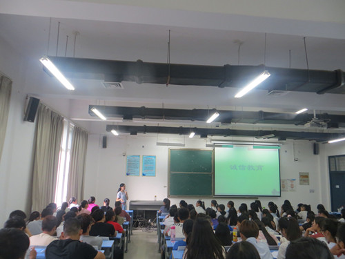 9月24日上午,段婧老师在合302教室从不同的方面对2016级新生进行了诚信教育、日常管理与行为规范、安全知识等系列教育。首先,段老师结合国家和学校的奖助学贷政策向学生进行了诚信教育,她结合生活中的实例向大家说明了诚信的重要性,告诫大家以德立身要从讲诚信开始,申请助学贷款和获得资助的学生一定要心怀感恩之心,做到按时还款、努力学习奋斗。接下来,段老师针对《williamhill威廉希尔学生手册》中的新生学籍管理规定、奖励规定、学生违纪处分管理规定等做了详细的讲解,并针对我院学生迟到、早退、无故缺课的处理及应受处分给予学生警示,关于病假、事假的请销假流程做了严格的规定。