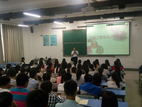 9月24日上午,魏院长通过列举生活中随处可见的包装产品,向同学们介绍了包装所涵盖的内容。接着,他给同学们详细分析了包装专业的发展现状、产业分布、发展趋势、人才需求等,阐述了本专业良好的发展势头和巨大的发展潜力。最后,魏院长还向同学们介绍了包装专业的培养目标、课程设置、发展方向等,并建议同学们为自己设定目标,合理规划自己的大学生活,争取早日成为包装行业的栋梁之才!