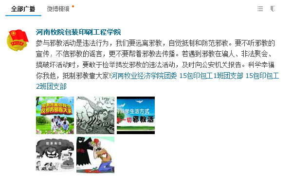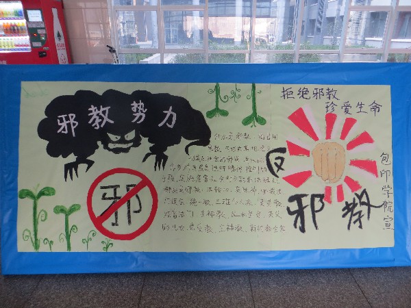 为此,我院团总支充分运用宣传海报、网络等媒体,开设反邪教宣传专栏,发表反邪教标语,扩大宣传覆盖面,提升影响力。增强同学们识别邪教、抵制邪教的能力,充分认识邪教、迷信等活动的本质及危害性。