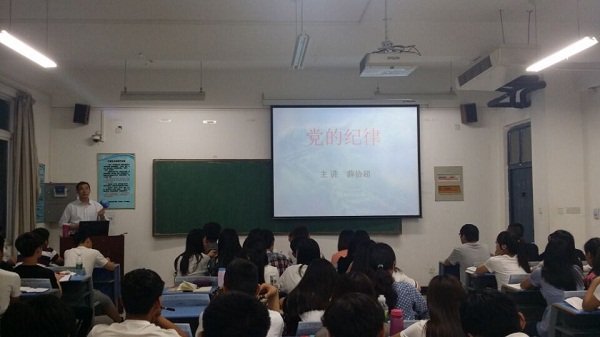 5月15日晚7:00,我系在龙子湖校区A222教室举办了本期入党积极分子培训班第七讲——《党的纪律》专题培训课,由旅游管理系党总支书记薛协超担任主讲老师。