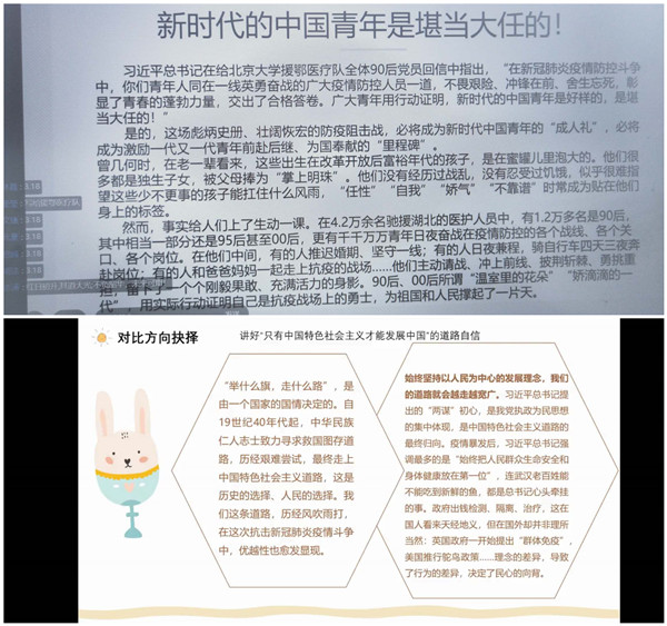 为深入学习习近平总书记关于疫情防控工作的重要讲话精神,引领广大青年学生进一步坚定制度自信,4月23日下午,我院开展了以“绽放战役青春,坚定制度自信”为主题的线上团课活动。