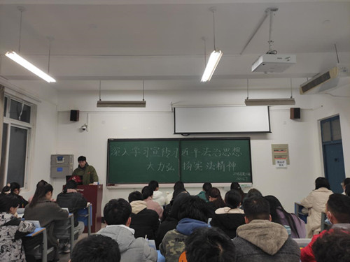 12月4日—7日,为深入学习宣传习近平法治思想、大力弘扬宪法精神”,引导学生做宪法的尊崇者和拥护者,我院组织20级各班于早读固定教室开展“深入学习宣传习近平法治思想、大力弘扬宪法精神”主题学习活动。
