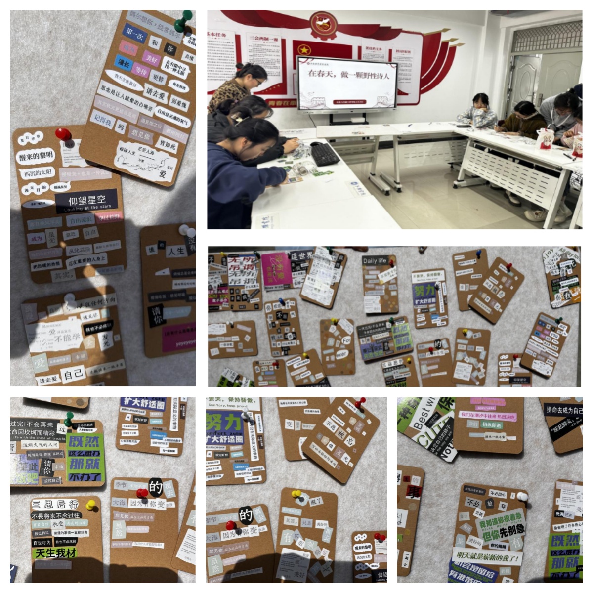 为进一步深化我院优良学风建设,提高学生的学习热情和创新能力,营造良好的学习氛围,我院于3月29日开展以“在春天,做一颗野生诗人”为主题的拼贴诗活动。