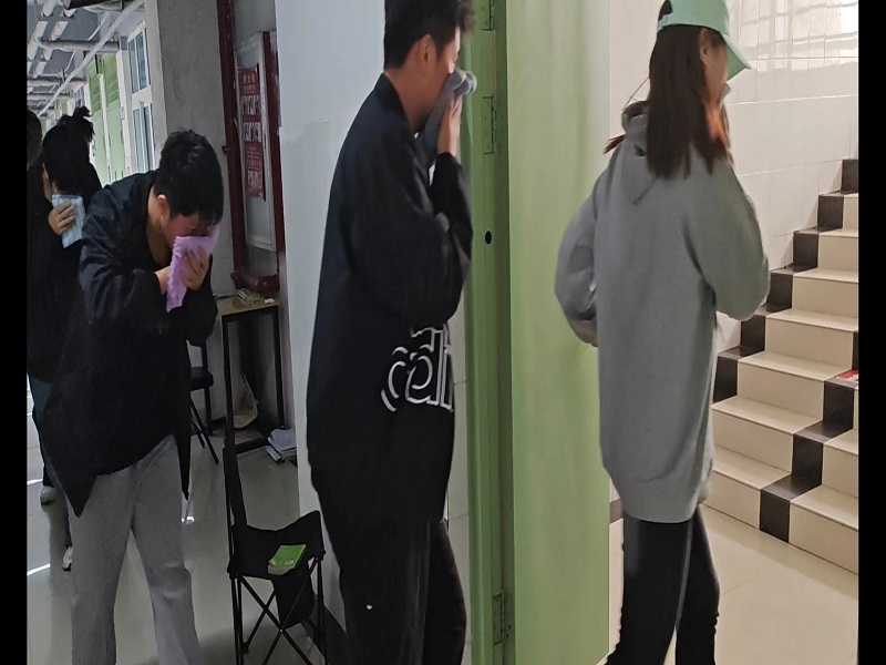 活动开展前,陈梦楠老师为大家普及了一系列有关消防安全的知识及疏散演练时需要注意的事项,让学生充分了解紧急事件发生后的安全避险方法。随着警声的响起,消防演练正式开始,按照“安全第一、就近逃生”的疏散原则,同学们用湿毛巾捂住口鼻,弯腰前行,小跑有序地向安全地带撤离。同学们安全撤离到户外安全区域后,各宿舍立即清点人数,确保无一人遗漏。在疏散过程中,大家快而不乱,忙中有序。