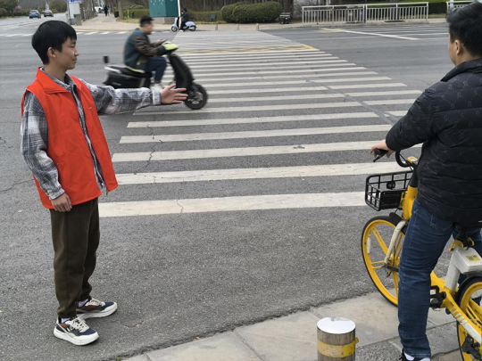 活动期间,志愿者们统一身穿红马甲,手持指挥旗,耐心地引导过往行人和非机动车辆遵守交通规则;礼貌地劝导行人不闯红灯、不随意横穿马路;热情地帮助老人、儿童等特殊群体过马路,确保交通畅通有序。在开展疏导交通活动的同时,志愿者们把周边无序停放的共享单车,按照“规范停放,摆放有序,朝向一致”的原则进行整理摆放,有效解决原先车辆乱停乱放和占用道路的问题。