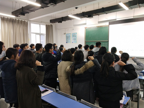 段老师首先介绍了文明礼仪的内涵,并列举了校园中存在的不文明现象:空中抛物、在桌子上乱刻乱画、在宿舍教室等场所大声喧哗等。紧接着,段老师结合案例强调了大学生尤其是学生干部文明礼仪和行为习惯培养的重要性,并告诫广大学生干部要杜绝不文明行为,严格要求自己,时刻牢记自身的责任,自觉做到时时讲文明,处处重礼仪,为普通学生树立良好的榜样形象。讲座的最后,全体学生干部起立,发出了做文明大学生的庄严承诺:我承诺,我宣誓,做一个诚实守信,文明守纪的人!