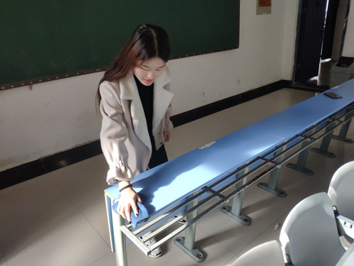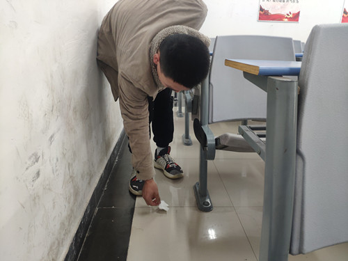 为营造良好的学习环境,12月5日,19级印刷班在2号教学楼教室内开展了以“教室清洁”为内容的志愿活动。在进行了简单的任务分配之后,同学们便开始了对教室墙面、桌椅、地板等的清扫工作。志愿者们首先对教室内的垃圾进行清理,然后利用抹布和洗涤剂认真仔细的清除桌面上的污垢和字迹。经过志愿者的努力,基本清除了桌面上的涂鸦,教室环境焕然一新。通过此次活动,志愿者们也呼吁大家呼吁大家爱护我们的课桌,不要乱涂乱画,做文明的大学生!