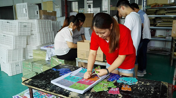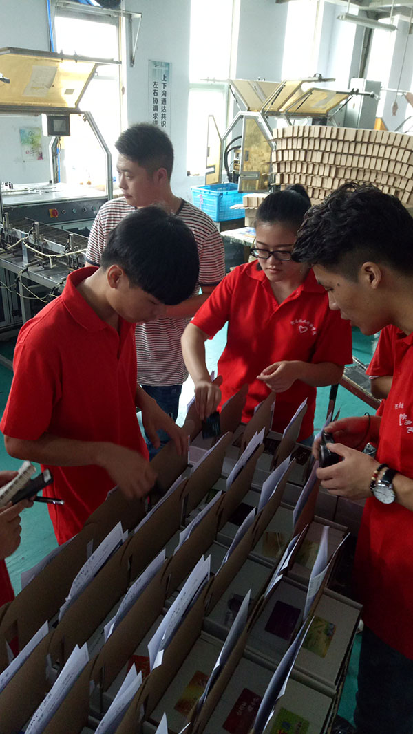 7月7日,客服部的老师和生产部的老师带大家到不同的岗位上进行体验、实践,客服部的成员跟着老师学习到如何通过与客户协商解决问题,生产部的同学分别跟各位老师参与并学会了PVC工艺流程中的贴磁、检卡、打孔、上磁、打码等工作程序,车间的各位师傅为大家热心讲解,同学们也都认真学习、虚心求教,力求最短时间内掌握最牢固的基本知识技巧。