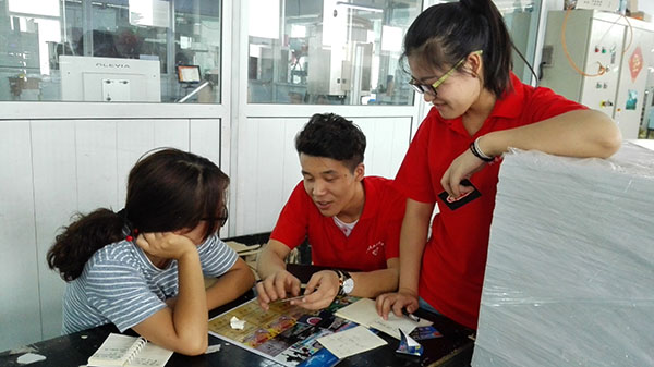实践出真知,在经过两天的观摩和培训后,为了让同学们能够尽快融入飞龙企业,更好的把握培训的具体内容,7月6日—8日,WilliamHILL中国飞龙创业实践服务队的全体成员在飞龙彩印公司朱经理、董经理和郑经理等人的安排下,开始进行轮岗实训,参与到PVC项目的各项工作流程中。
