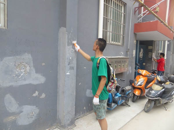 在下午的活动中,大家受到了磨李社区党支部的热情接待,磨李社区负责党务活动的罗老师亲自迎接,向学生党员介绍了社区的大致情况并与我院在工作上达成了一致。接下来,同学们按照老师的分工安排,不顾炎热投身到社区服务中去,负责宣传教育的同学们纷纷拿着准备好的宣传页向广大社区群众普及社区文明及交通安全常识,另一组党员同学则深入到社区的各个角落,积极为社区清理垃圾、去除小广告。经过学生党员们将近两个小时的辛勤劳动,社区环境立刻焕然一新。