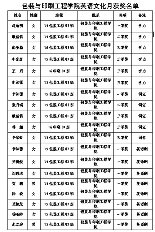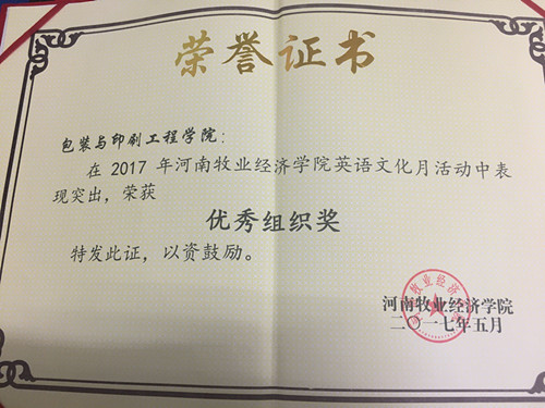 为了提升我院学生的英语水平,营造良好的学习英语氛围,从4月—五月,我院积极组织学生参加了由学工部、校团委、公共外语教研部联合举办的2017年williamhill威廉希尔英语文化月活动。日前,此次活动落下帷幕,经过班级选拔和院系推荐,我院参赛学生在激烈的比赛中发挥出色,我院15包工2班的李沛蕾学生荣获词汇比赛一等奖、15包工3班赵丽明获听力比赛一等奖,选送的课本剧《To See You Is My Best Present》荣获课本剧比赛一等奖,同时我院还获得了优秀组织奖的荣誉。