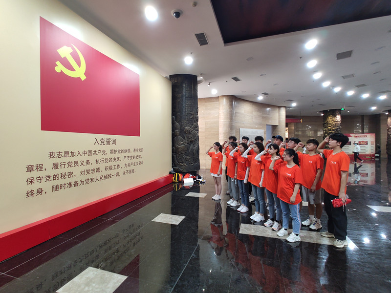 中原英烈纪念馆位于郑州烈士陵园内,馆内一层设计的12根6米高的浮雕柱完整讲述了从“五四运动”、“二七大罢工”、“三路大军挺进中原”到“河南人民政府成立”这段中原大地上长达40年的革命斗争史。队员们认真参观场馆内展示的珍贵史料,那一个个熟悉的英烈名字,一幅幅珍贵的革命照片,一件件斑驳的历史实物,一幕幕惊心动魄的战斗场景,使队员们仿佛置身于战争年代先烈们英勇奋战、投身报国的场景中。在吉鸿昌烈士纪念厅,大家看到了慷慨就义的吉鸿昌,并感受到他的一身正气、视死如归的英雄气概;在公仆楷模焦裕禄厅,目睹了一位勤俭节约、廉洁奉公、鞠躬尽瘁的优秀共产党员的感人事迹……每一个展馆大家都仔细观看,无一不被先烈们抛头颅、洒热血、前赴后继,甚至不惜牺牲性命的革命精神所深深感动。参观结束后,队员们面向党旗重温入党誓词,激励大家始终铭记老一辈革命烈士的流血牺牲,继承先辈遗志,用实际行动接力奋斗。