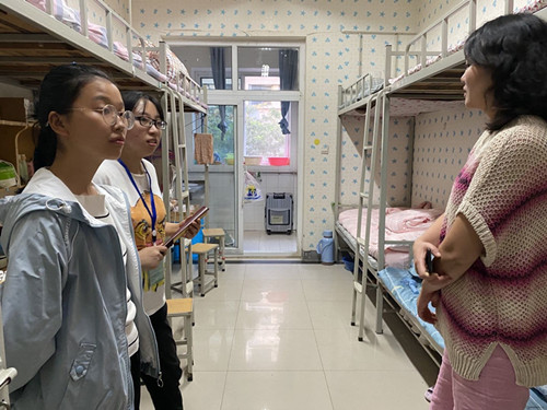 当天下午,我院学工队伍全体成员走进新生宿舍,与新生亲切交流,了解同学们的生活适应情况,并对新生关心和关注的问题进行了详细解答。