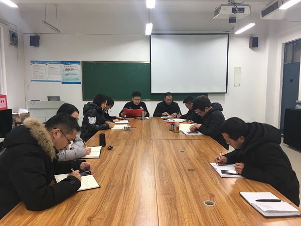 2020年元月3日上午,院党委组织召开中心组学习扩大会议,集中学习学校第一次党代会精神。院党委书记胡晓波主持,院党委委员及科级以上干部参加。