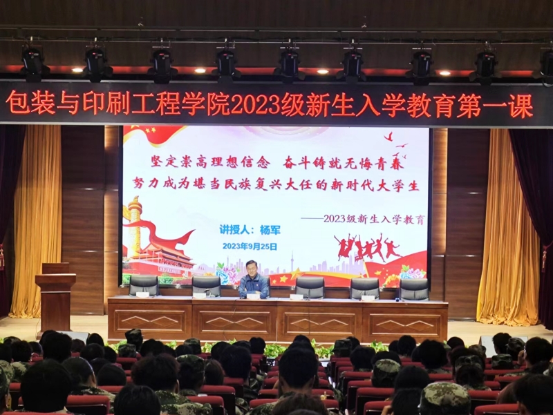 典礼结束后,全体新生观看了强国思政课之《做新时代好青年》。杨军以《坚定崇高理想信念·奋斗铸就无悔青春——努力成为堪当民族复兴大任的新时代大学生》为题,为在座的新生上了入学教育第一课。他结合从教20余年的经历分享了三点感悟:一是用身边鲜活的实例鼓励同学们要牢记作为大学生的责任,勇担时代使命,希望同学们爱党、爱国、爱社会主义,勤奋笃学,知行合一,用青春的活力书写人生的新篇章;二是激励同学们要深刻领悟“国之大者”,与伟大祖国同频共振;三是号召同学们坚定崇高理想信念,用理想与情怀打好奋斗底色,努力成为堪当民族复兴大任的新时代大学生。