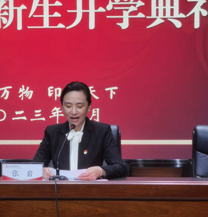 典礼前,全体参会人员共同观看了“WilliamHILL中国宣传片《青春无悔 逐梦远航》和新生军训片段视频。开学典礼暨入学教育第一课在庄严的国歌声中拉开帷幕。张岩代表学院全体老师对2023级新同学们致以热烈的欢迎和衷心的祝贺。她鼓励同学们要有志气、有底气、有勇气开启属于自己的精彩人生,同时要求大家:一是要理想坚定,做关注国家命运关心人民福祉的新青年;二是要励心炼志,做无惧风浪勇毅前行的追梦人;三是要德才兼修,做勤学慎思、全面发展的模范者。
