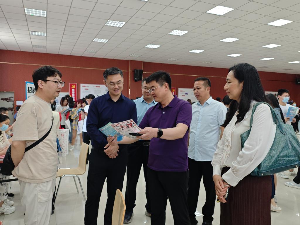 双选会期间,大学生就业创业指导服务中心主任胡先锋莅临现场,依次与各个用人单位和参会的同学们进行了亲切交流,深入了解企业招聘需求和毕业生求职情况。胡主任对与会企业的大力支持表示感谢,指出需要进一步拓宽校企合作广度和深度,把握好春招的黄金期,有序推进、全面冲刺做好2024届毕业生的就业工作。