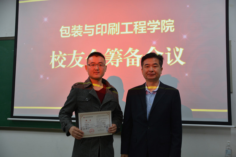 李中华对返校的校友表示热烈的欢迎和诚挚的问候,向各位校友介绍了学校日新月异的发展,并对校友们提出四个期待:一是能够常回母校看看,看看曾经学习生活的地方,共话师生深厚情谊;二是共谋学校发展大计,为母校发展建言献策、呐喊助威;三是积极加入校友会,在这个大家庭有所作为;四是在工作中取得更大进步,成为母校最闪亮的名片。魏庆葆介绍了学院发展的历程和学科专业发展的现状。包装技术95级董鸿森、印刷技术06级蒋理鹏、包装技术09级魏星和印刷技术12级张松林四位校友作为早期、中期和近期优秀校友代表发言,共同追忆青葱岁月和母校的点点滴滴,感恩母校的培育之情。会上,李中华为学院校友会筹备组成员颁发了聘书。